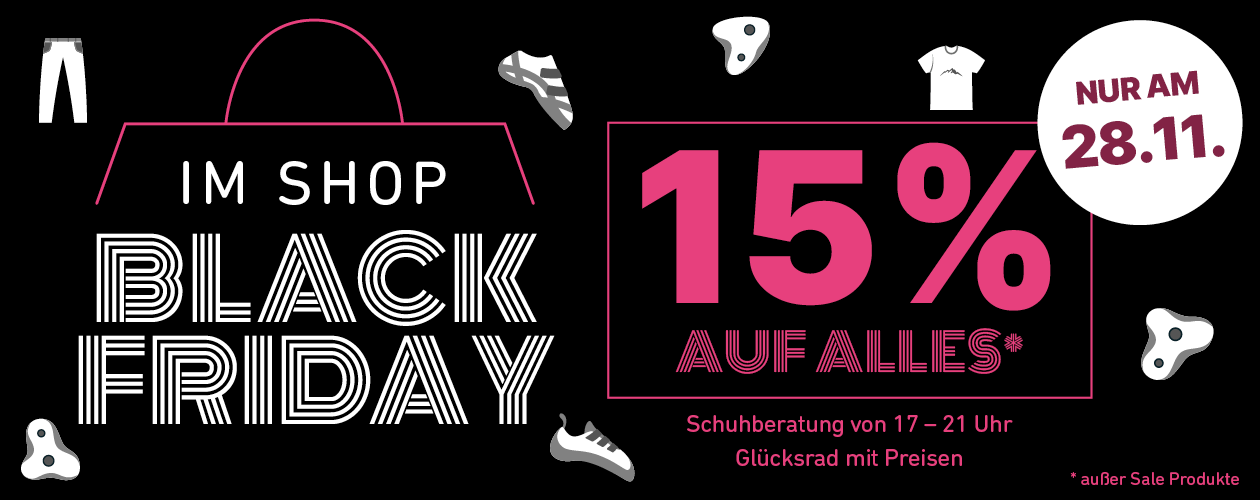 Nur an diesem Tag! Egal ob Schuhe, Kleidung, Chalk oder Accessoires – alles geht mit Rabatt über die Theke.